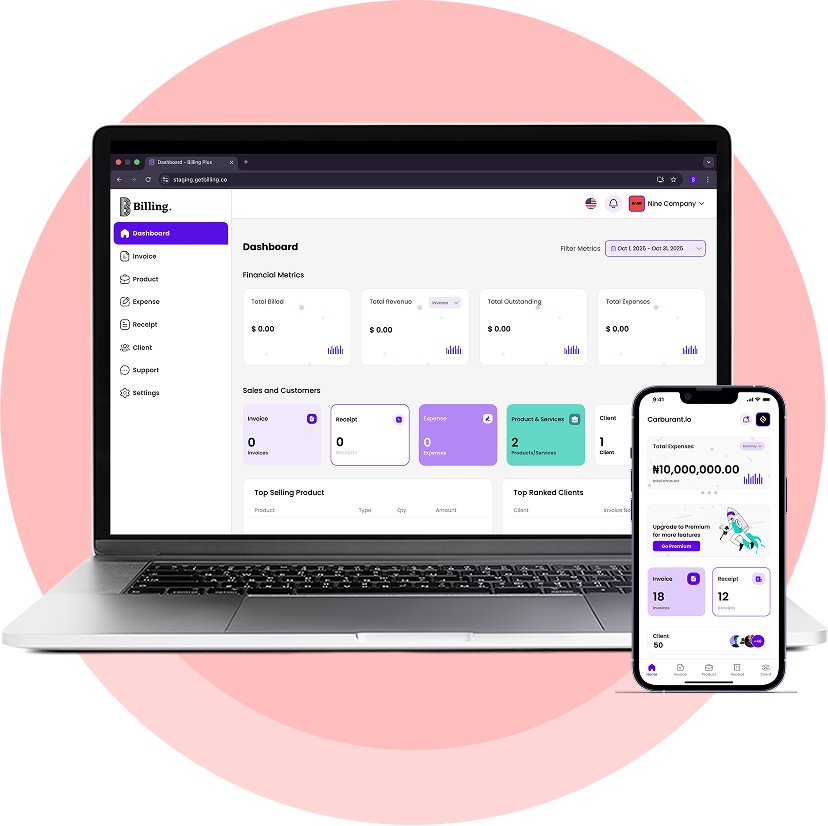 Revolutionize your company’s business management with Billing. Our platform provides an all-in-one solution for overseeing invoices, receipts, and expenses, optimizing workflows, and enhancing financial decision-making.